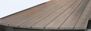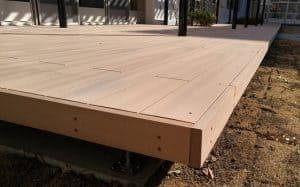 R形状やファニチャーなど、自由にご利用いただける加工性に優れた人工再生木デッキです。
