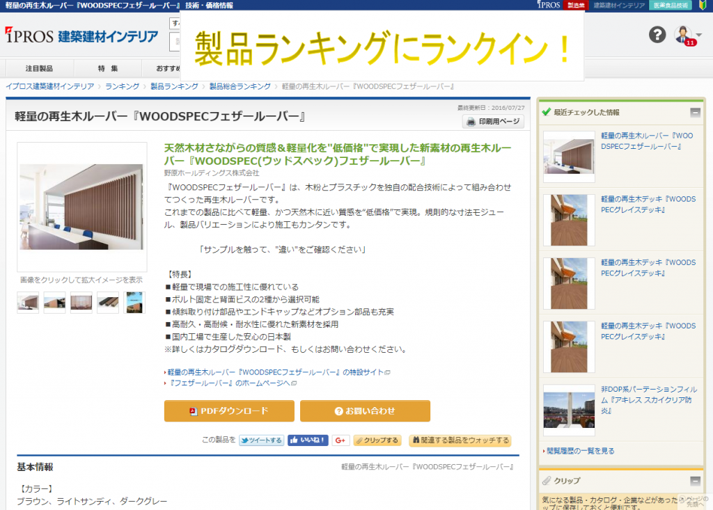 イプロスのランキングは、カタログ情報が「どれだけ見られたか」を集計しランキングで公開されるものです。