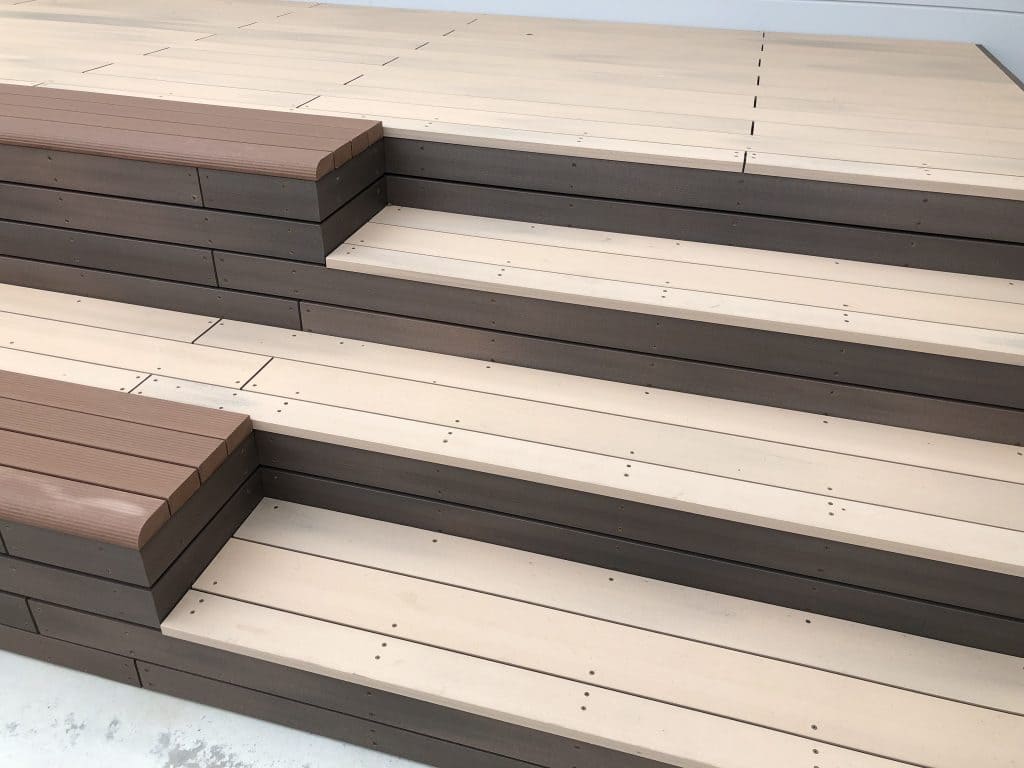 グレイスデッキが天然木さながらの木質感・あたたかみを演出しています。