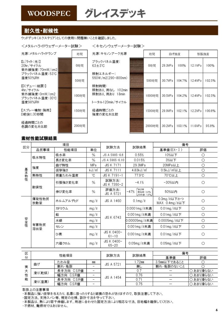 グレイスデッキはメタルハライドウェザーメーター試験とキセノンウェザーメーター試験を行っております。