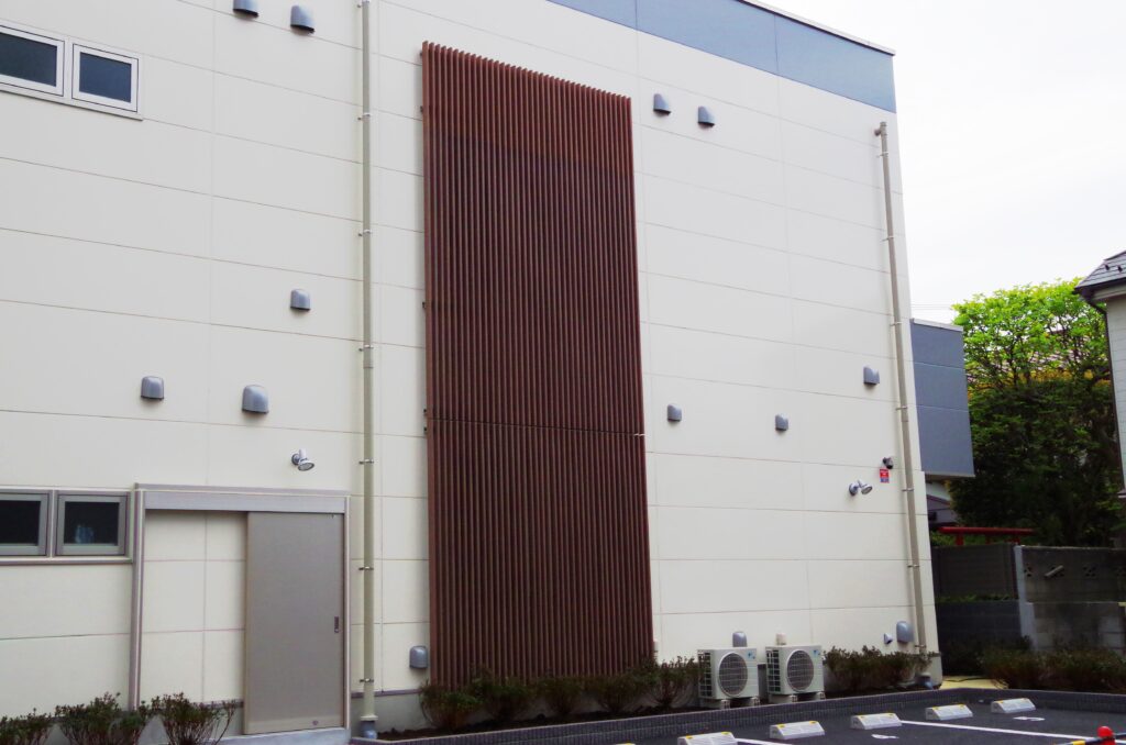 外壁に人工木ルーバーを取り付けることで、建物に独特の雰囲気を作り出すことができます。様々な素材の特徴を考慮し、建物の雰囲気に合った外壁素材を選んで下さい。