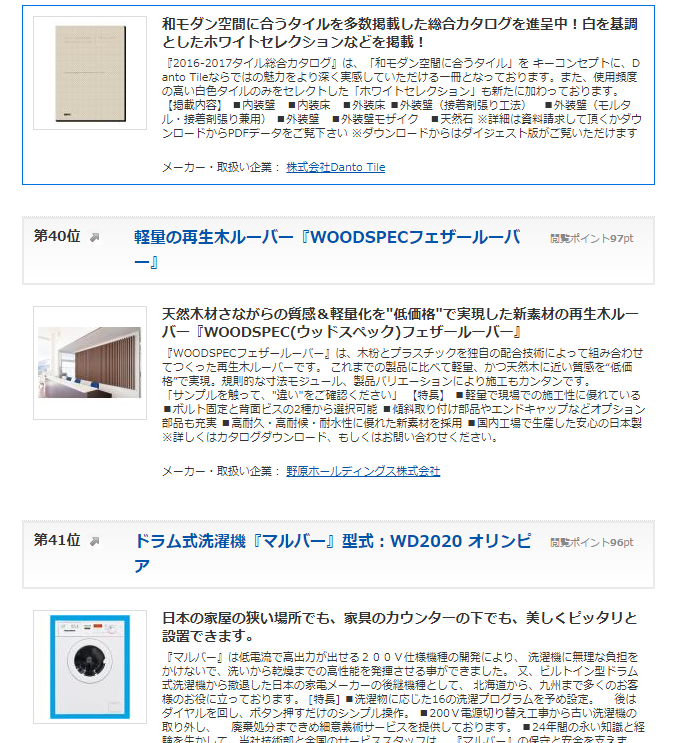 イプロスのランキングは、カタログ情報が「どれだけ見られたか」を集計しランキングで公開されるもので、